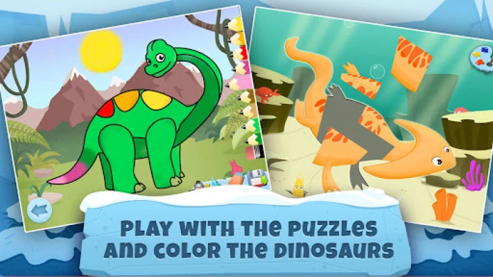 They will learn about dinosaurs with puzzles and sound effects and can color the characters using a magic brush.