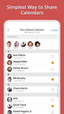 Inviting members to a shared calendar is quick and easy. Simply send a link to members, or invite them using their phone numbers from your contact list. They will be able to instantly view the calendar on any device.