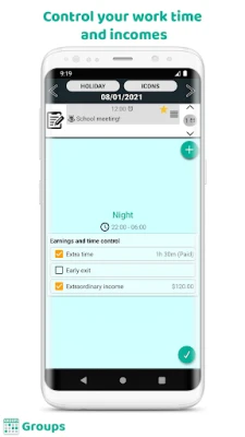 - Add your workday, salary and rest time and keep an exhaustive control of your schedules 📊