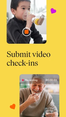 + Submit video check-ins and report side effects or symptoms